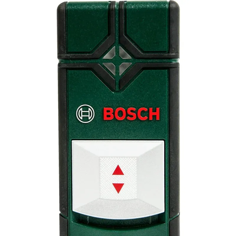 Максимальная глубина обнаружения для каждого материала своя. Лучше всего детектор Bosch регистрирует сталь – 70 мм. Конструкции из цветных металлов, например, медные трубы устройство способно найти в 60 мм от поверхности. Кабели под напряжением можно обнаружить на глубине 50 мм.Включение и выключение выполняется одной сдвижной кнопкой-слайдером. Над ней расположен светодиод, который может гореть 3 цветами: