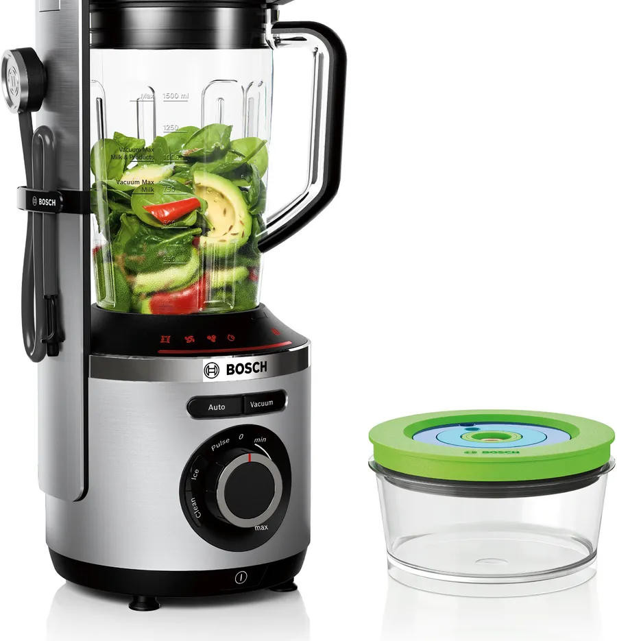 Одной из ключевых особенностей этого блендера является наличие вакуумного насоса. Вакуумный контейнер объемом 1.5 литра позволяет сохранить витамины и полезные свойства продуктов, улучшая вкусовые качества приготовленных блюд. Также стоит отметить, что все съемные детали можно мыть в посудомоечной машине, что значительно облегчает процесс уборки после использования.