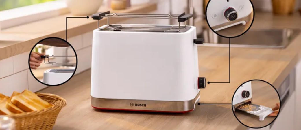 Тостер Bosch TAT4M221 — это устройство, которое привнесет в вашу кухню стиль и функциональность. Благодаря своему современному дизайну и белому цвету корпуса, он идеально впишется в любой интерьер, будь то классический или современный. Прибор оснащен двумя отделениями, что позволяет одновременно поджаривать два тоста, что особенно удобно для большой семьи или любителей сытных завтраков. Модель оснащена механическим управлением, что делает ее использование простым и удобным. Вам не придется тратить время на изучение сложных инструкций — все интуитивно понятно и доступно. Регулировка степени поджаривания позволяет настроить прибор на оптимальный режим работы, чтобы достичь идеального результата. Бесступенчатый терморегулятор обеспечивает равномерное и быстрое поджаривание хлеба. Тостер оснащен таймером, что позволяет точно контролировать время приготовления. Функция Stop позволяет в любой момент прекратить процесс приготовления, что исключает пережаривание. Функции размораживания и подогрева делают использование тостера еще более удобным и функциональным. Автоматическое центрирование тостов обеспечивает равномерное распределение тепла по всей поверхности хлеба. Экстра-подъем для маленьких ломтиков хлеба High Lift позволяет легко достать готовые тосты из отделения. В случае застревания тостов, устройство автоматически отключается, что гарантирует безопасность использования. В комплекте с тостером идет подставка для подогрева булочек, что делает его еще более универсальным. Поддон для крошек легко вынимается и очищается, что облегчает уход за прибором. Намотка кабеля в цоколе позволяет компактно хранить устройство. Тостер Bosch TAT4M221 работает от сети 220-240 В при частоте 50-60 Гц. Мощность устройства составляет 970 Вт, что обеспечивает быстрое и качественное приготовление тостов.