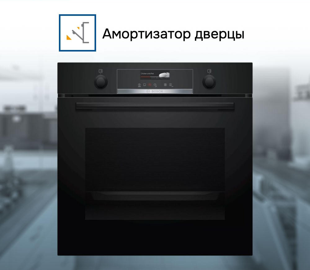 Духовой шкаф Bosch HBG539EB0 выполнен в цвете нержавеющей стали и оснащён серебристой фурнитурой. Элементы управления — утапливаемые поворотные ручки и сенсорные кнопки. Камеру освещает одна галогенная лампа мощностью 25 Вт. Уровней установки противней — пять. Амортизатор SoftClose позволяет мягко закрывать дверцу. Наружное стекло греется не более чем до 50°С. Предусмотрена блокировка от детей. Модель комплектуется двумя противнями (универсальным и эмалированным) и комбинированной решёткой.