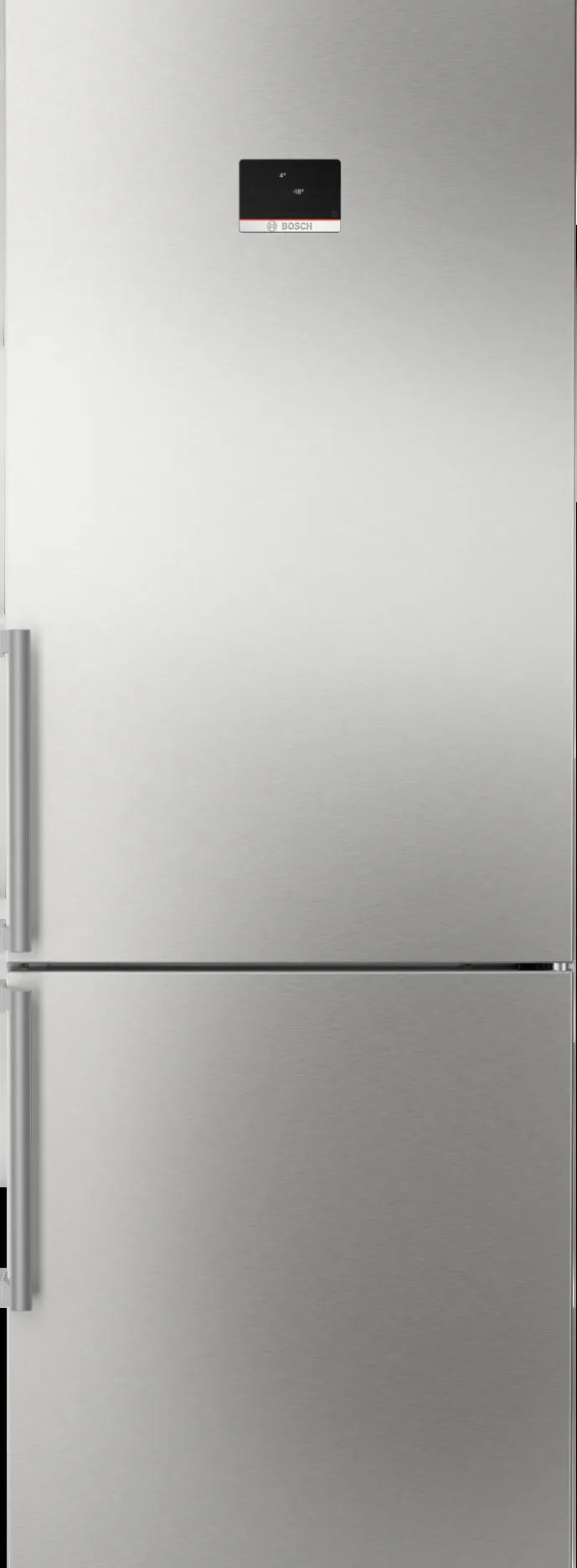 Двухкамерный холодильник Bosch KGN49AIBT — это превосходный выбор для тех, кто ценит качество, надежность и функциональность. Произведенный в Евросоюзе, он обеспечивает высокий уровень производительности и долговечность, подтвержденную гарантией на 12 месяцев. Стильный и современный дизайн холодильника выполнен в цвете нержавеющей стали, что делает его идеальным дополнением к любому интерьеру. Особенностью является обработка против отпечатков пальцев, благодаря которой поверхность всегда остается чистой и аккуратной. Управление холодильником осуществляется при помощи сенсорных элементов и электронного дисплея, что обеспечивает удобство и простоту использования. Система охлаждения No Frost и автоматическое размораживание обеспечивают оптимальные условия для сохранения свежести продуктов. С общим полезным объемом в 440 литров, в том числе 311 литров в холодильной камере и 129 литров в морозильной, этот холодильник предоставляет достаточно места для хранения большого количества продуктов. Внутри холодильника есть 5 полок, из которых 3 регулируемые и 2 фиксированные, а также специальная полка для бутылок и 4 полки на дверце. Все полки изготовлены из высокопрочного стекла, что обеспечивает их долговечность и надежность. Особое внимание заслуживает зона свежести VitaFresh, которая создает идеальные условия для хранения овощей, фруктов и мясных продуктов. В морозильной камере предусмотрены 3 ящика для замороженных продуктов и функция суперзамораживание SuperFreezing, позволяющая быстро заморозить большое количество продуктов.