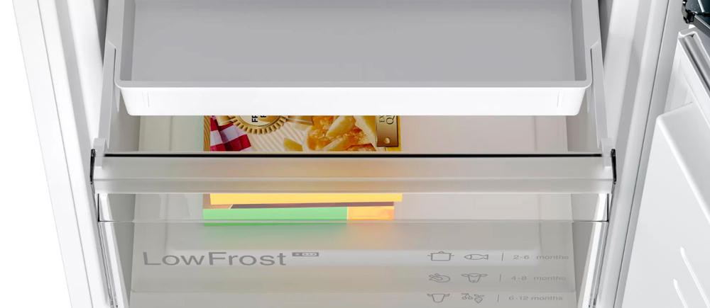 Двухкамерный холодильник Bosch KIV86VS31R — встраиваемая модель VitaFresh XXL с увеличенным объемом холодильной и морозильной камер. Система охлаждения LowFrost уменьшает обледенение морозильной камеры, излишняя влага отводится наружу через специальное отверстие. Функция SuperFreezing обеспечивает быстрое замораживание новых продуктов, предотвращая размораживание содержимого морозилки.