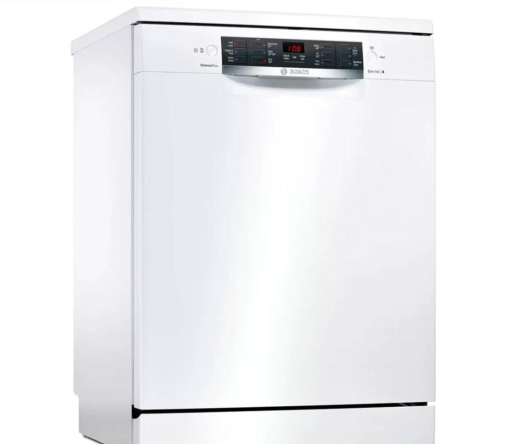 Посудомоечная машина Bosch SMS46NW01B из серии Serie | 4 выделяется лаконичным дизайном и практичной функциональностью. Её светлый корпус с белой панелью управления обладает нейтральной, успокаивающей эстетикой, которая легко вписывается в любую кухню — от современной до традиционной. Такой подход делает технику не просто бытовым прибором, а гармоничной частью интерьера.