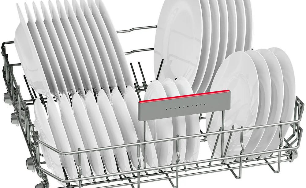 Посудомоечная машина Bosch SMV4HVX14E полностью соответствует современным требованиям к интерьеру кухни: полноразмерная конструкция продумана для удобного размещения в нише высотой 81,5–87,5 см и шириной 50 см, при глубине 55 см. Передняя панель управления выполнена из нержавеющей стали, отличается скрытым исполнением элементов, что обеспечивает минималистичный внешний вид и простоту интеграции под мебельные фасады; дисплей и сенсорные индикаторы аккуратно встроены, а кнопочные органы управления располагаются удобно, интуитивно и надёжно.