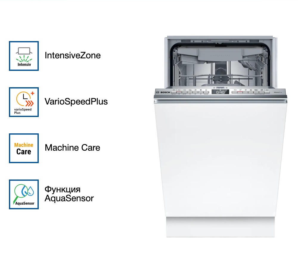 Встраиваемая посудомоечная машина Bosch SPV4HMX10E из серии Serie | 4 — это надежное и эффективное решение для современной кухни. Устройство выполнено в узком форм-факторе, что позволяет его установку даже в самых компактных пространствах.
