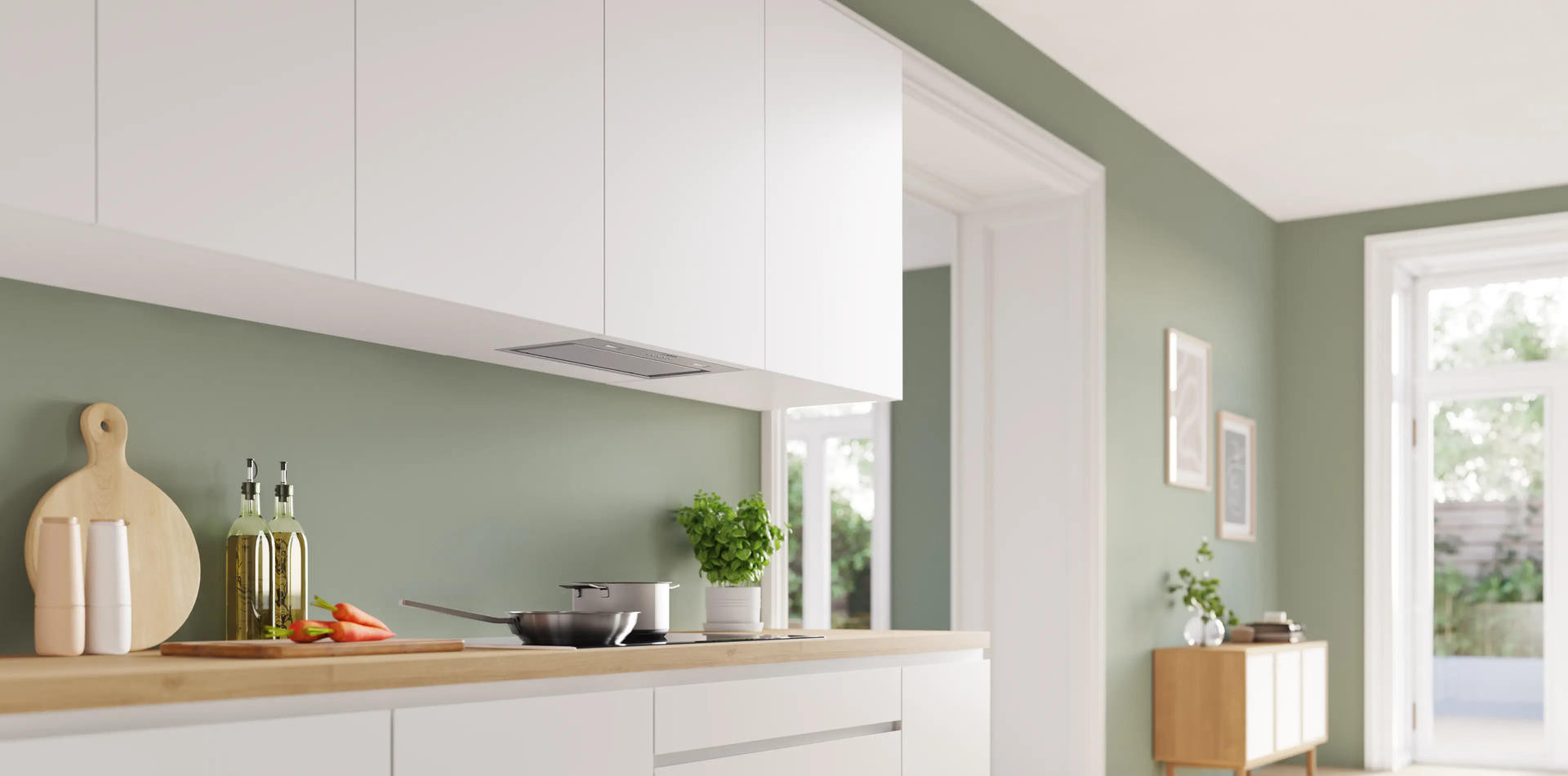 Вытяжка Bosch DLN56AC50 из серии Serie 6 сочетает продуманный облик и техническую содержательность, идеально вписываясь в современную кухонную среду. Корпус и декоративные элементы, включая фурнитуру и дымоход, выполнены из нержавеющей стали, что обеспечивает долгую службу, устойчивость к коррозии и минимальную заметность отпечатков. Габариты модели (высота 34.5 см, ширина 52 см, глубина 28.2 см) соответствуют стандартным нишам для встраивания размером 34.5 х 49.6 х 26.4 см, поэтому устройство удобно монтируется в подвесной шкаф без изменения обстановки.
