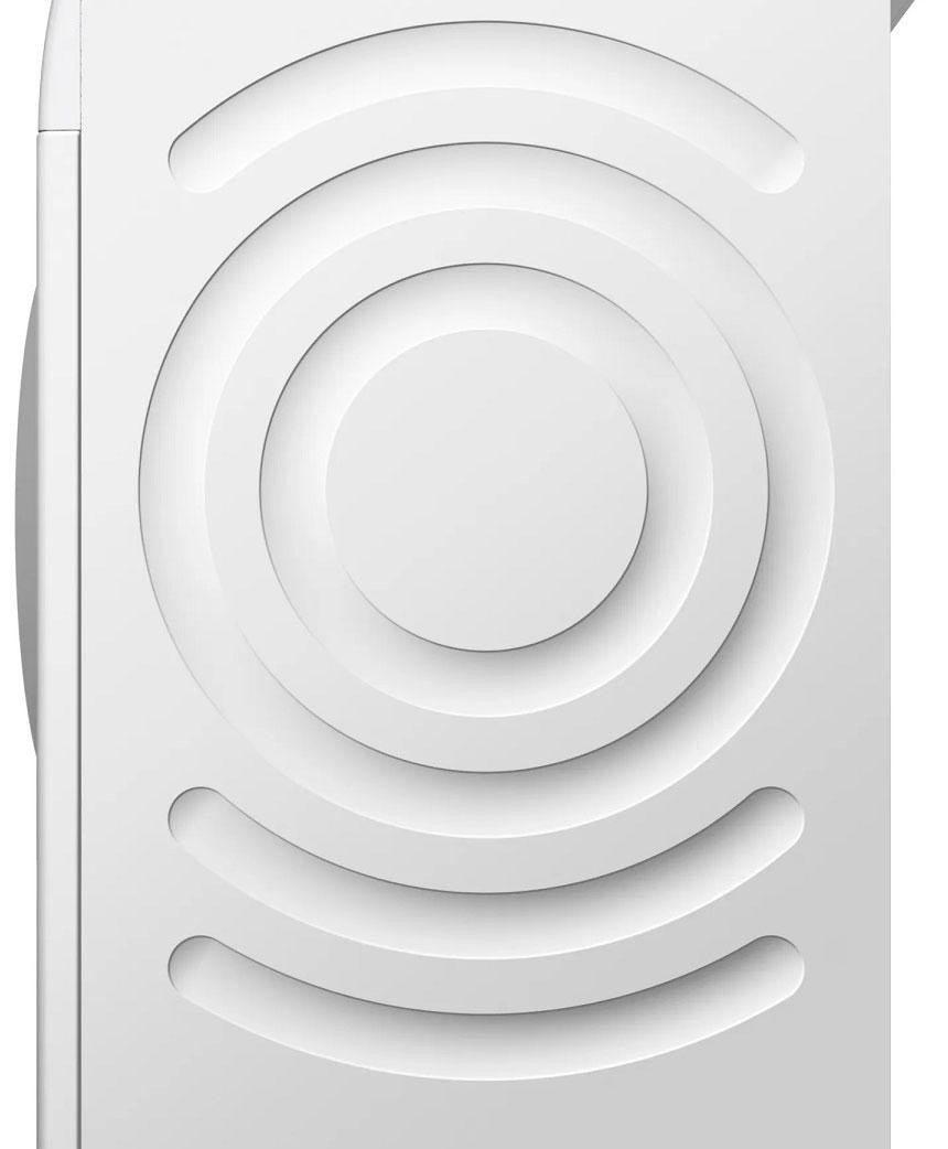 Обратите внимание на дизайн модели Бош WAX32E90ME. Несмотря на то, что в нее входит до 10 кг белья, она не выглядит громоздкой. Классический белый цвет поможет ей вписаться практически в любое пространство. А дуги и круги на боковых стенках будут гасить излишнюю вибрацию и шум, даже во время полоскания и отжима. Максимальная скорость отжима — 1600 оборотов в минуту, а уровень шума — до 71 Дб. Такие характеристики достигаются и благодаря современному бесщеточному мотору EcoSilenceDrive. Благодаря постоянным магнитам в его устройстве он чрезвычайно быстро достигает максимальной мощности. Такая конструкция более долговечна, чем щеточный мотор, а значит, машина прослужит вам долго.