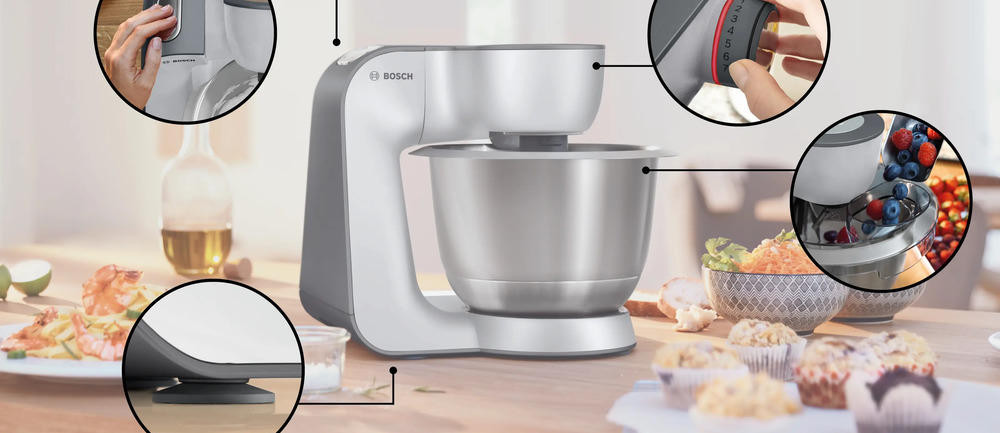Функциональная начинка ориентирована на широкий спектр задач: двигатель мощностью 1000 Вт справится с замесом, измельчением и переработкой овощей, фруктов, мяса и теста. Планетарное вращение MultiMotion Drive обеспечивает равномерное перемешивание по всей глубине ёмкости, позволяя получить однородную массу даже при больших объёмах — до 2.7 кг теста или 1.9 кг дрожжевого теста. Для точного контроля предусмотрены семь скоростей и импульсный режим, а система плавного пуска защищает структуру продуктов и исключает разбрызгивание на старте. Элементы управления сочетают кнопки и поворотный переключатель, что упрощает выбор подходящего режима и повышает удобство эксплуатации для пользователей с разным опытом.