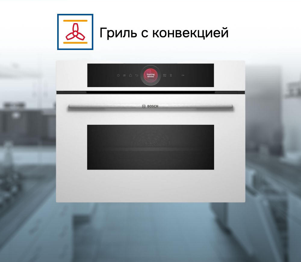 Система Home Connect дает возможность управлять прибором дистанционно через смартфон или планшет, что добавляет удобства в использовании. Духовой шкаф Bosch CMG7241W1 оснащен десятью режимами нагрева, включая верхний/нижний жар, большой и малый гриль, гриль с конвекцией, нижний жар, подогрев посуды и автоматический быстрый разогрев. Это позволяет приготовить практически любое блюдо, от классической пиццы до изысканного десерта. Внутреннее LED-освещение обеспечивает хороший обзор процесса приготовления пищи. Дверца шкафа откидная, с амортизатором SoftClose, что обеспечивает мягкое и плавное закрытие. Трехслойное остекление дверцы и система охлаждения прибора предотвращают перегрев и гарантируют безопасность использования. Блокировка от детей защищает от случайного включения или изменения режимов работы. В комплекте с шкафом идут комбинированная решетка и универсальный противень.