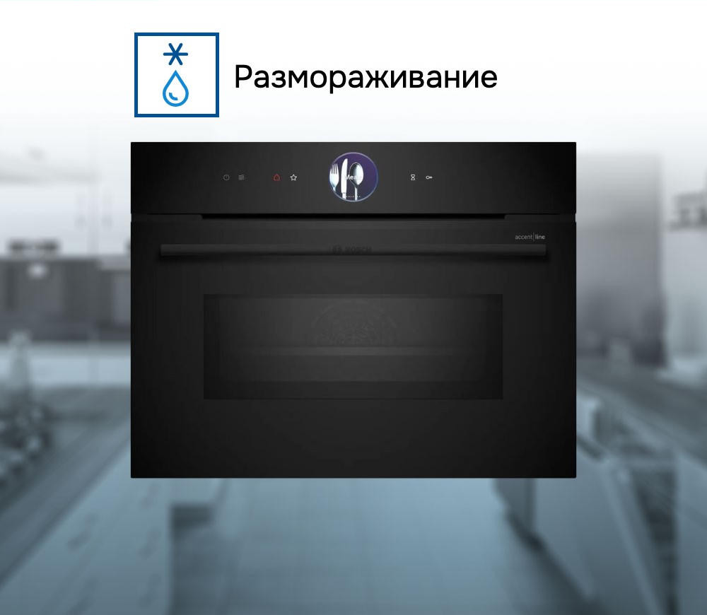 Особенностью духового шкафа Bosch CMG936AB1S является функция 4D-горячего воздуха, которая обеспечивает равномерное распределение тепла по всему объему печи. Режим горячего воздуха Gentle обеспечивает бережное приготовление блюд, сохраняя все витамины и полезные свойства продуктов. Верхний и нижний жар, верхний и нижний жар ECO, большой и малый гриль, гриль с конвекцией и термогриль, режим для пиццы и нижний жар - все эти функции делают этот прибор незаменимым помощником на кухне. Дополнительные функции, такие как подогрев посуды, поддержание температуры, функция Air Fry для приготовления блюд без добавления масла, размораживание и микроволновая печь с 5 уровнями мощности, делают этот духовой шкаф максимально универсальным. Автоматический быстрый разогрев позволяет сократить время приготовления блюд, а внутреннее освещение LED обеспечивает отличную видимость внутри печи.