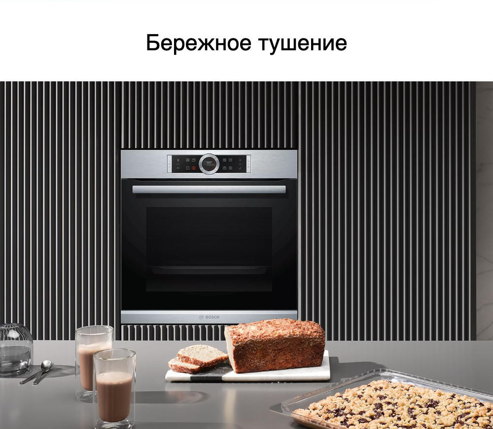 Духовой шкаф Bosch HBG655BS1M обладает интерактивным TFT-дисплеем с сенсорной панелью управления и переключателем ControlRing, что значительно облегчает эксплуатацию прибора. Автоматические программы AutoPilot помогут в приготовлении разнообразных блюд. Просто выбираете нужную программу и ждете результат. Дверца духового шкафа SoftMove обладает специальным амортизатором, что способствует ее плавному и тихому закрыванию.