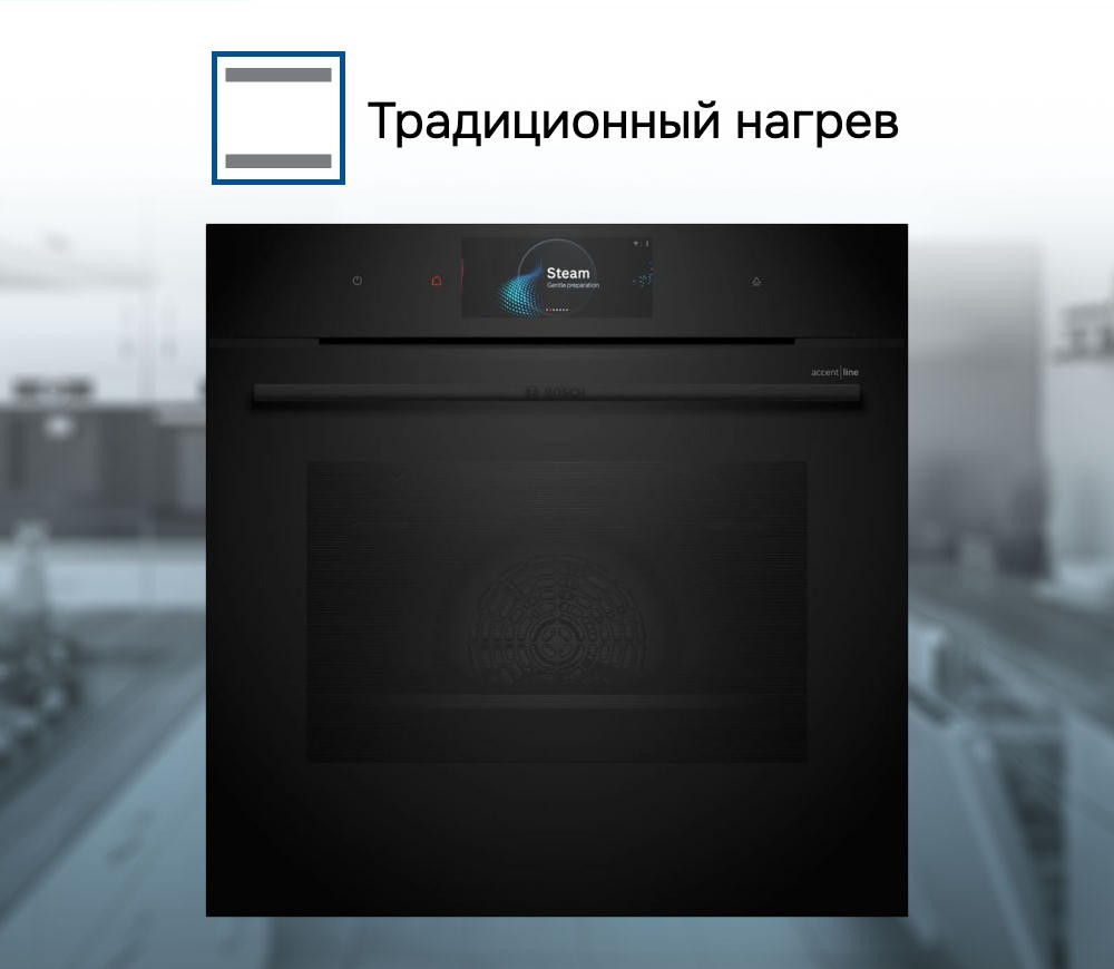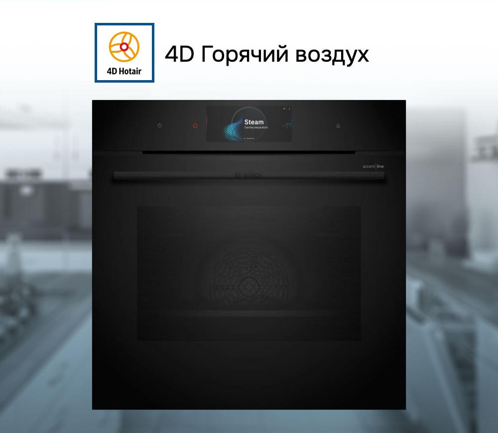 Духовой шкаф Bosch HRG978NB1 оснащен системой Home connect, теперь вы можете управлять устройством с помощью голосового помощника. Имеются телескопические направляющие на 1 уровне, они нужны для безопасного извлечения противня. 4D горячий воздух одновременно распределяет тепло на всех уровнях приготовления.
