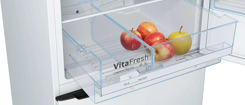 Отличительной особенностью является наличие технологии VitaFresh, которая способствует сохранению свежести продуктов в 3 раза больше, поддерживая оптимальную температуру и уровень влажности.