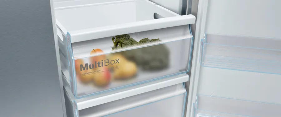 Холодильник Bosch KAN93VL30N из серии Serie 4, обладает общим полезным объемом 616 литров, из которых 371 литр приходится на холодильную камеру и 189 литров на морозильную камеру. Этот холодильник впечатляет своим современным дизайном и качественной отделкой из нержавеющей стали, которая придает ему элегантность и стиль. Управление устройством осуществляется с помощью сенсорных элементов и удобного электронного дисплея. Также холодильник оборудован функцией Home Connect, что позволяет управлять им дистанционно.