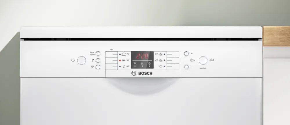 Посудомоечная машина Bosch SMS26DW00T представляет собой полноразмерное, отдельностоящее устройство белого цвета. Модель оснащена инновационным инверторным двигателем EcoSilence Drive, который обеспечивает тихую и эффективную работу. Способность уместить до 13 комплектов посуды делает эту модель идеальной для больших семей или вечеринок. Машина предлагает шесть стандартных программ и пять температурных режимов, включая два вида быстрой мойки при 45 и 65 градусах, экономичную, интенсивную, стекло при 40 градусах и предварительное ополаскивание.