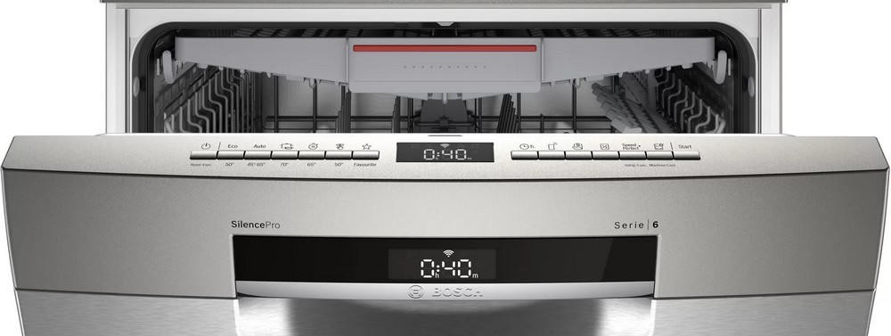 Посудомоечная машина Bosch SMS6ECI07E — современная отдельностоящая модель, выполненная в цвете нержавеющей стали. Прибор имеет загрузку в четырнадцать комплектов, что обеспечит потребности большой семьи. Благодаря технологии Home Connect возможно отслеживать состояние посудомоечной машины при помощи смартфона. Уровень шума при работе составляет всего 38 дБ.