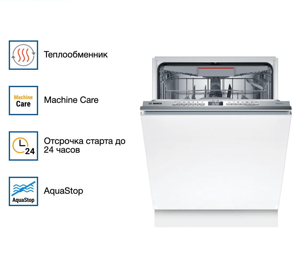 Встраиваемая посудомоечная машина Bosch SBH4ECX10E — это высококачественный и многофункциональный помощник на кухне. Произведенная в Евросоюзе, она отличается превосходным качеством сборки и использованием современных технологий. Дизайн машины выполнен в классическом стиле, что позволяет ей гармонично вписаться в интерьер любой кухни. Панель управления, выполненная из нержавеющей стали, не только придает модели элегантный вид, но и обеспечивает ее долговечность. Машина оснащена инверторным двигателем EcoSilence Drive, который обеспечивает тихую и эффективную работу. Благодаря этому, уровень шума составляет всего 42 дБ, что позволяет использовать машину даже ночью без беспокойства о том, что она помешает отдыху. Вместительность устройства составляет 14 комплектов посуды, что делает его идеальным выбором для больших семей. Машина предлагает шесть стандартных программ мытья и четыре температурных режима, позволяя выбрать наиболее подходящий режим для различных типов посуды и степени ее загрязнения. Особенностью модели является функция VarioSpeedPlus, которая позволяет ускорить процесс мытья до трех раз, сохраняя при этом отличное качество. Также стоит отметить наличие системы AquaStop, которая обеспечивает полную защиту от протечек. Модель оснащена функцией автооткрывания дверцы после окончания программы, что способствует более эффективной сушке посуды. Система Machine Care помогает поддерживать машину в чистоте и продлевает ее срок службы. Посудомоечная машина Bosch SBH4ECX10E оснащена функцией Home Connect, которая позволяет управлять устройством с помощью смартфона. Это очень удобно, так как позволяет запускать и контролировать процесс мытья даже на расстоянии.