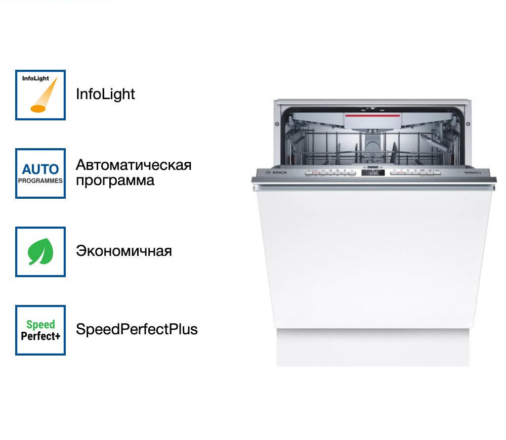Встраиваемая посудомоечная машина Bosch SBV6ZCX00E оснащена 5 программами мойки посуды. Прибор вмещает в себя до 14 комплектов и оборудован дополнительным ящиком VarioDrawer в верхней части. Home Connect упрощает запуск устройства. Теперь его можно активировать при помощи смартфона. Технология ActiveWater тщательно продумывает распределение воды, при этом снижает энергозатраты.