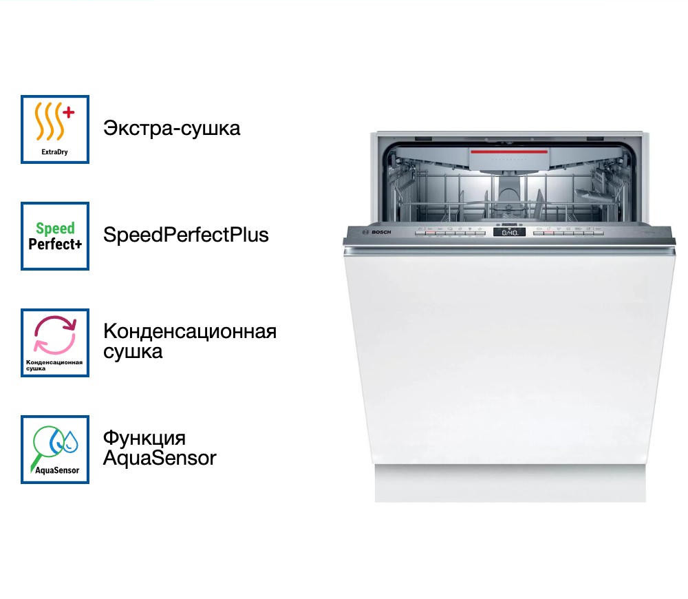 Встраиваемая посудомоечная машина Bosch SMV 4 HVX33E оснащен тихим мотором EcoSilence Drive. Благодаря стандартным размерам и современному дизайну отлично впишется в любой кухонный интерьер. За один цикл машина отмывает 13 комплектов посуды. Устройство оснащено индикаторами наличия соли и ополаскивателя. Датчик AquaSensor следит за чистотой воды после ополаскивания. Если она недостаточно чистая, то система её сливает и наполняет камеру новой.