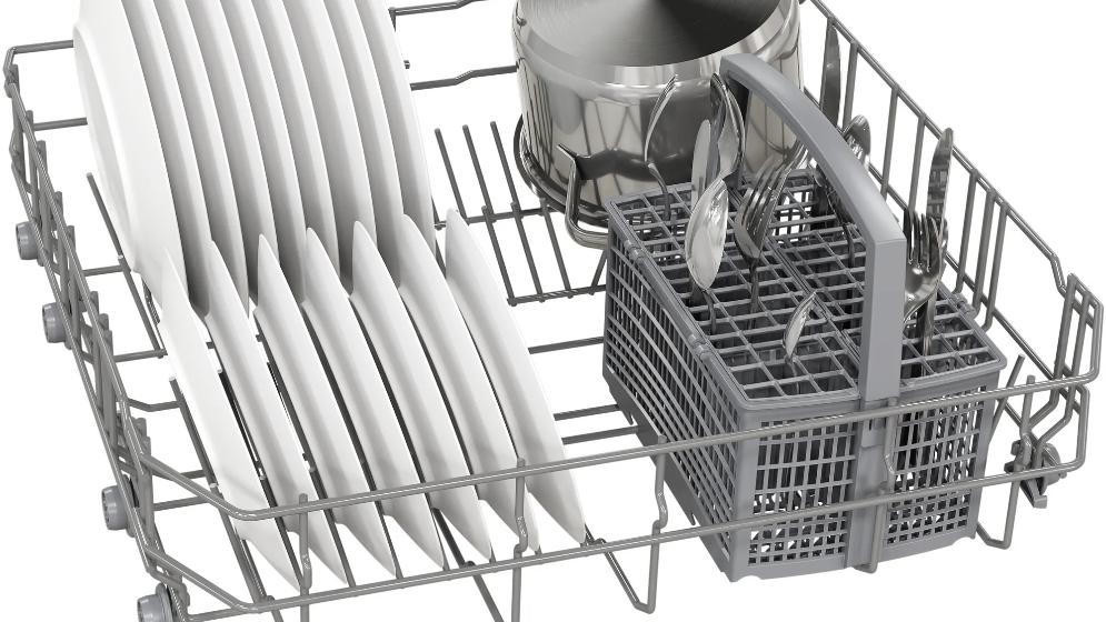 Встраиваемая посудомоечная машина Bosch SMV24AX04E — это высококачественное устройство, произведенное в Евросоюзе, предназначенное для полноразмерного использования. Она обладает черной панелью управления, которая идеально впишется в любой современный интерьер кухни. Дизайн этой модели подчеркивает ее функциональность и технологичность, а также гармонично сочетается с другими элементами кухонного оборудования. Особенностью машины является наличие инверторного двигателя EcoSilence Drive, который обеспечивает тихую и эффективную работу. Этот двигатель значительно улучшает качество мытья посуды и при этом экономит энергию. Встроенный теплообменник обеспечивает высококачественную сушку посуды, а система SpeedPerfectPlus позволяет ускорить процесс мытья без потери качества. Машина оснащена четырьмя стандартными программами мытья, которые позволяют выбрать оптимальный режим в зависимости от степени загрязнения посуды и экономии ресурсов. Три температурных режима позволяют настроить процесс мытья под конкретные типы посуды. Верхний короб машины можно регулировать по высоте, что позволяет разместить большое количество посуды различных размеров. В нижнем коробе предусмотрены две складные направляющие для тарелок и отдельная корзина для столовых приборов. Посудомоечная машина оснащена системой AquaStop, которая предотвращает протечки, а также функцией самоочистки фильтра. Материал внутреннего резервуара — комбинация нержавеющей стали и пластика, что обеспечивает долговечность и надежность машины.
