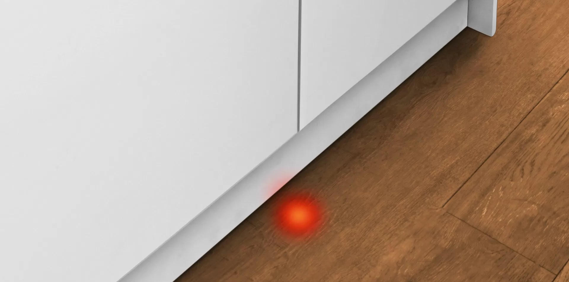 Индикатор «Луч на полу» — это надежный помощник в обращении со встраиваемой посудомоечной машиной Бош SMV25FX01R. Когда вы запускаете цикл мойки, устройство проецирует мягкий красный световой сигнал на пол, который является показателем активности машины. По окончании цикла мойки он становится зеленым, сигнализируя, что посуду можно вынимать. Теперь вы можете легко узнать, когда процесс завершен, даже не прибегая к открыванию дверцы.