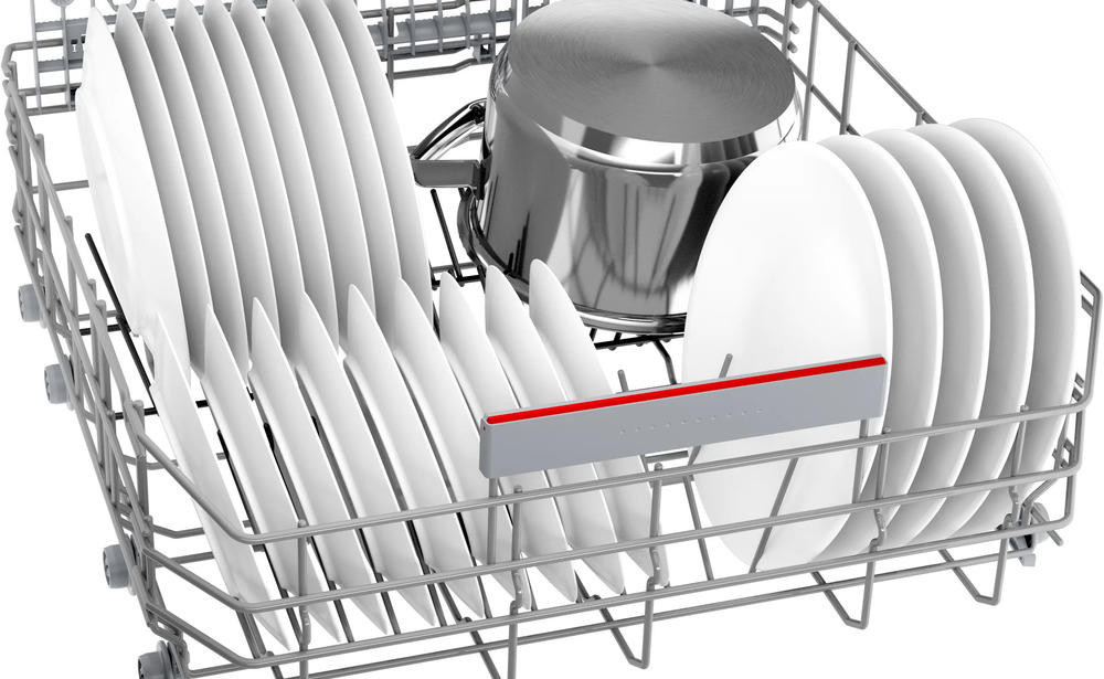 Техническая начинка ориентирована на долговечность и энергоэффективность: инверторный мотор EcoSilence Drive обеспечивает тихую работу на уровне 42 дБ и высокий ресурс без обслуживания щеток, а класс энергопотребления соответствует категории A по обновлённой шкале. Система теплообменной сушки делает посуда сухой и безопасной для деликатных материалов, при этом дополнительная опция экстра-сушки улучшает результат при плотных загрузках. Управление реализовано через закрытую панель с дисплеем и кнопочными элементами, дополнительно доступна интеграция с Home Connect для удалённого запуска через приложение на смартфоне и контроля цикла из любой точки.