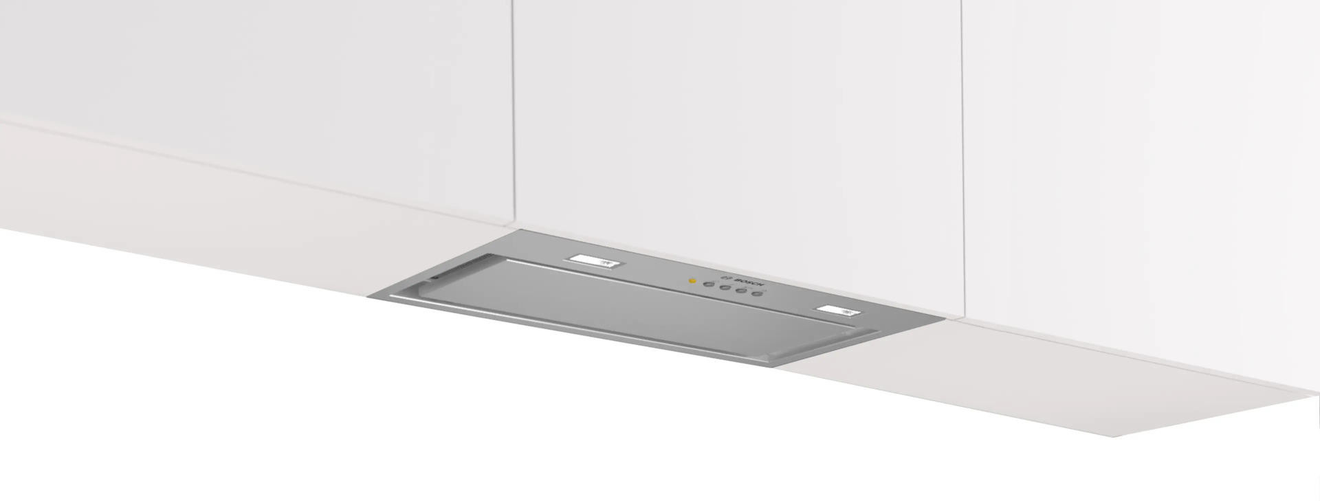 Вытяжка Bosch DLN56AC50 из серии Serie 6 сочетает продуманный облик и техническую содержательность, идеально вписываясь в современную кухонную среду. Корпус и декоративные элементы, включая фурнитуру и дымоход, выполнены из нержавеющей стали, что обеспечивает долгую службу, устойчивость к коррозии и минимальную заметность отпечатков. Габариты модели (высота 34.5 см, ширина 52 см, глубина 28.2 см) соответствуют стандартным нишам для встраивания размером 34.5 х 49.6 х 26.4 см, поэтому устройство удобно монтируется в подвесной шкаф без изменения обстановки.