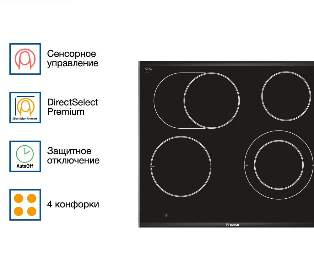 Управление построено на сенсорной системе DirectSelect Premium: все настройки выбираются одним касанием, а шкала из 17 уровней мощности позволяет тонко регулировать температуру для разных блюд. Дополнительные функции — поддержание тепла и ReStart — повышают удобство, позволяя сохранять выбранные параметры или поддерживать температуру готового блюда до подачи.