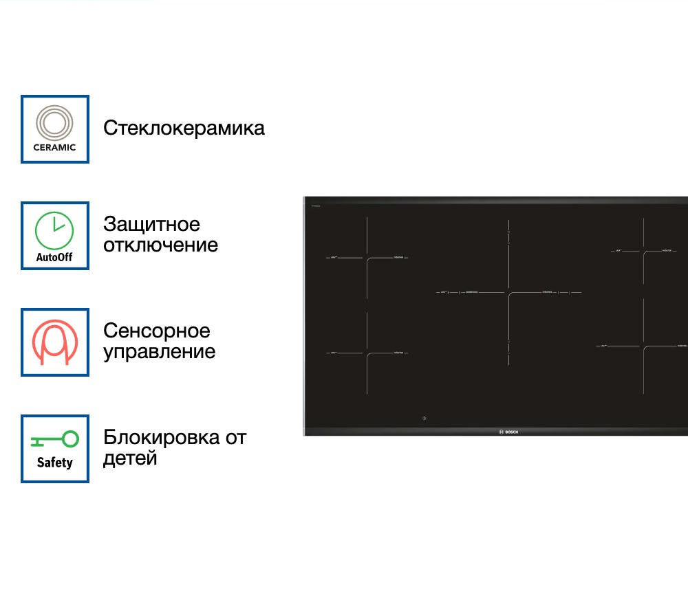 Пять зон нагрева, включая центральную трёхконтурную, дают полную свободу в выборе посуды — от маленькой кастрюльки до широкой сковороды. Панель сама определяет размер дна и активирует только нужную зону, не тратя энергию впустую. Управление — через сенсоры DirectSelect Premium: одно касание — и вы выбираете мощность из 17 уровней, запускаете таймер или включаете специальный режим.